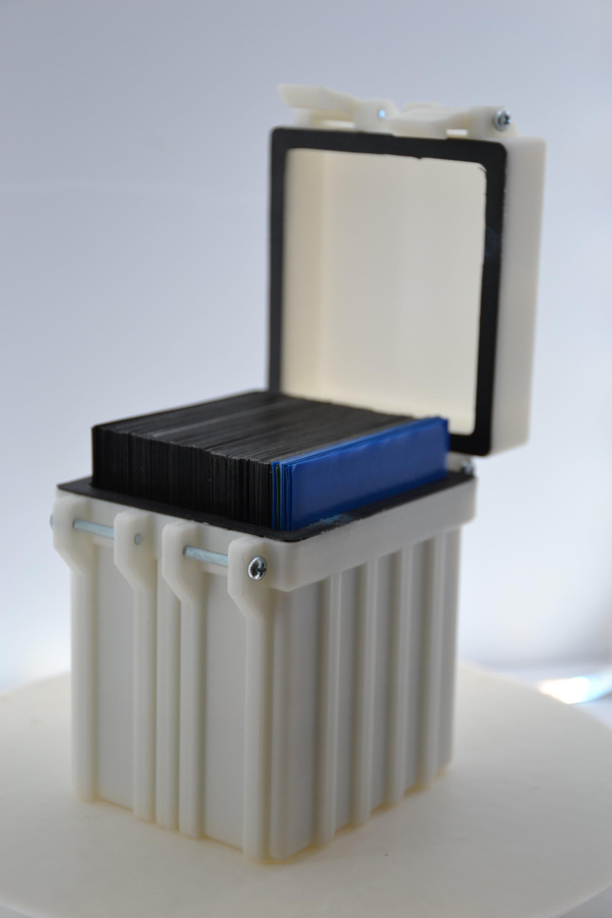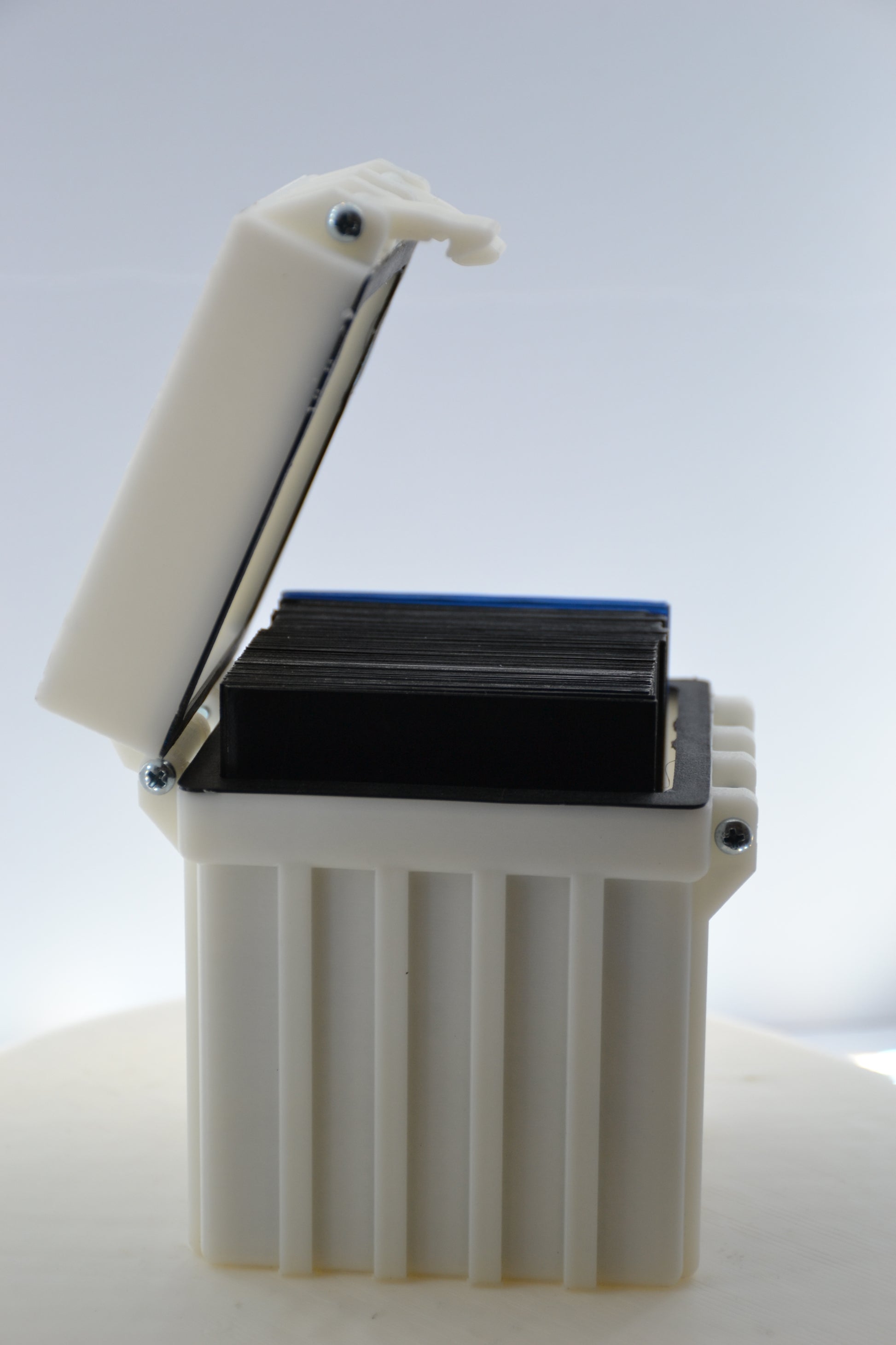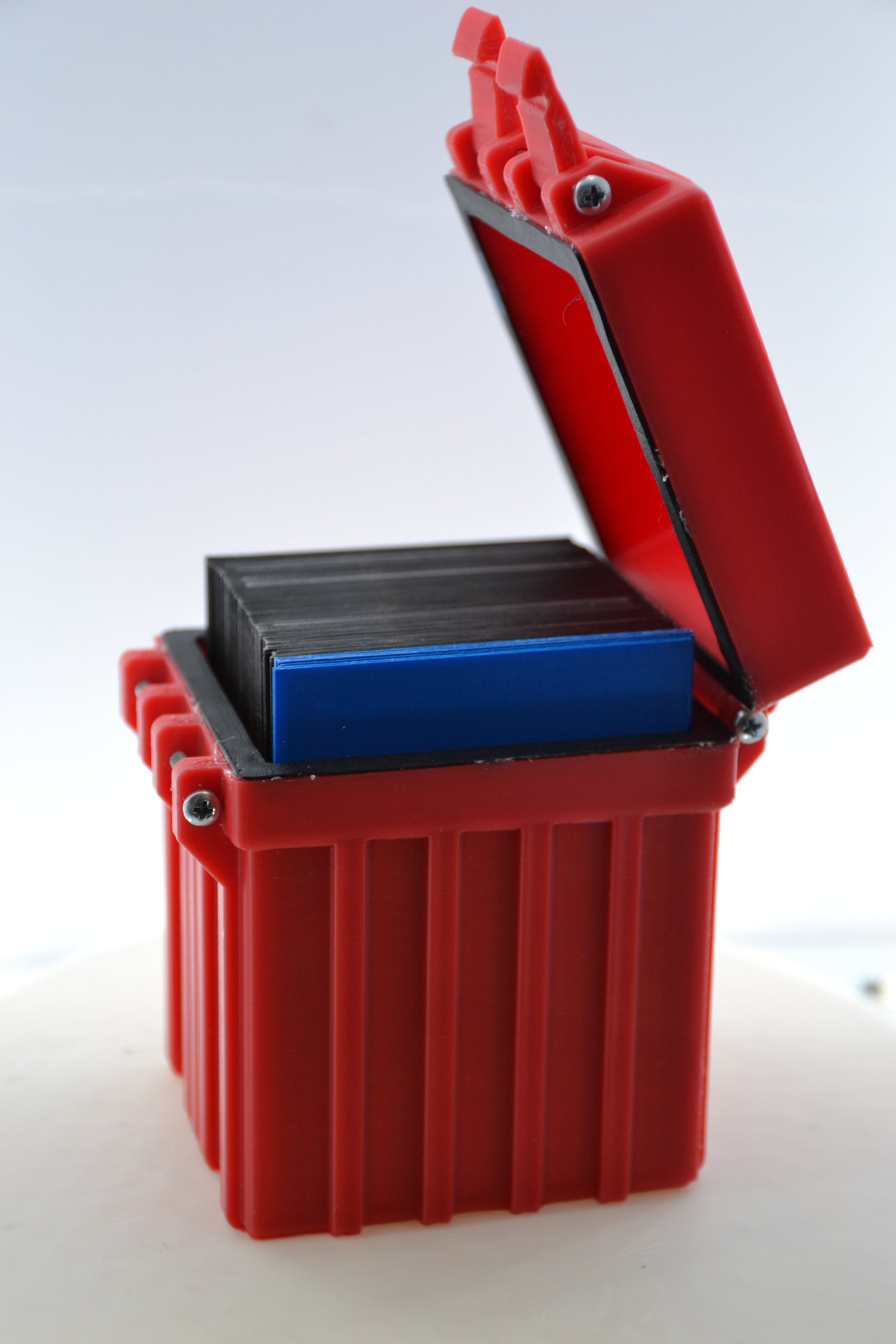 "The Gambler" is a rugged, 3D-printed card box that holds over 100 sleeved cards. It’s drop-proof, splash-resistant with a TPU-95A gasket, and secured by firm latches. We are continuously enhancing its water resistance through ongoing R&D. Here at NPC Protection, we make great efforts to ensure the safety of your cards. Products are made in the USA for quality and lasting durability.